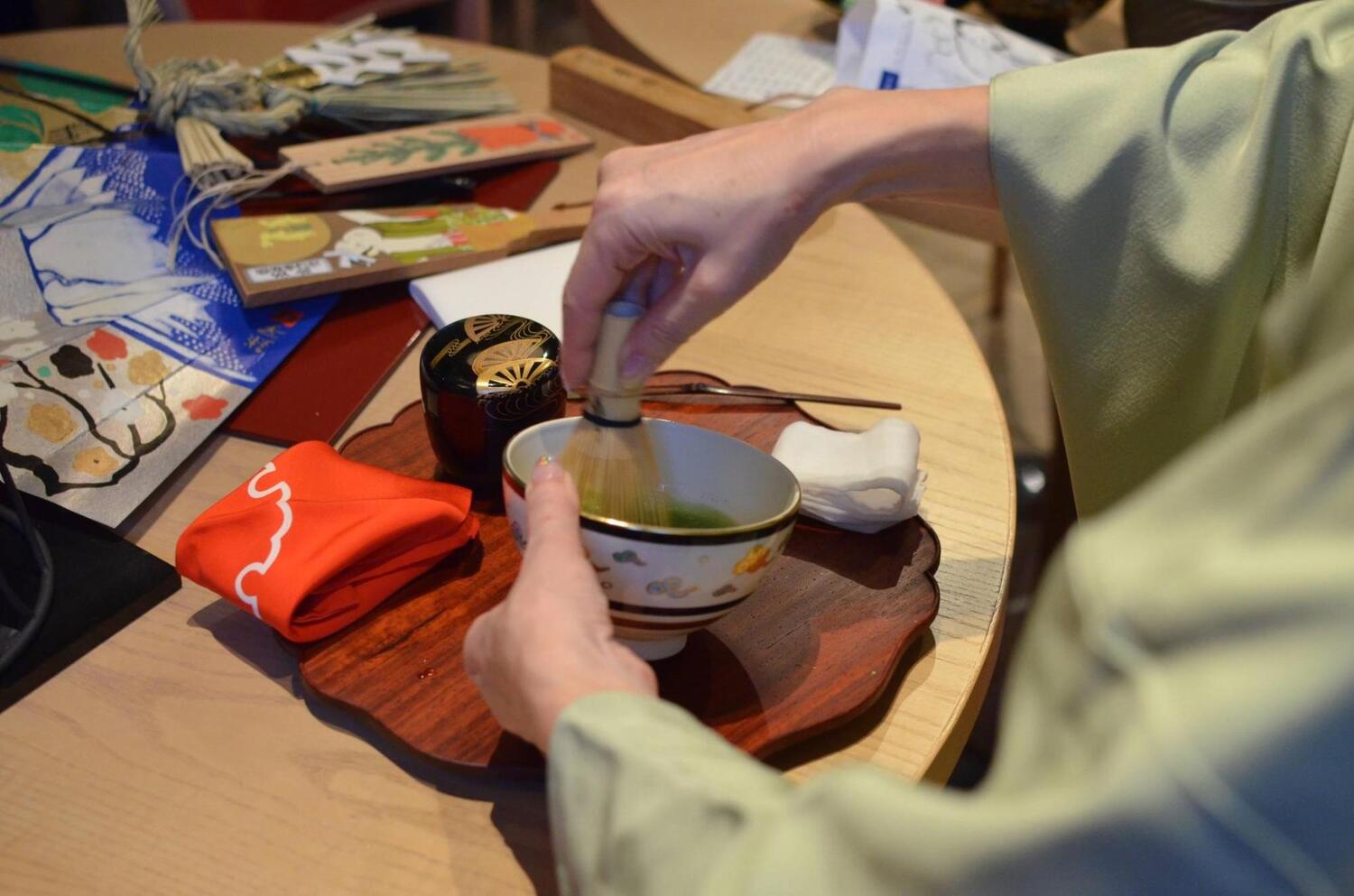 続いては、ゲスト自身がお抹茶を点てる体験です。