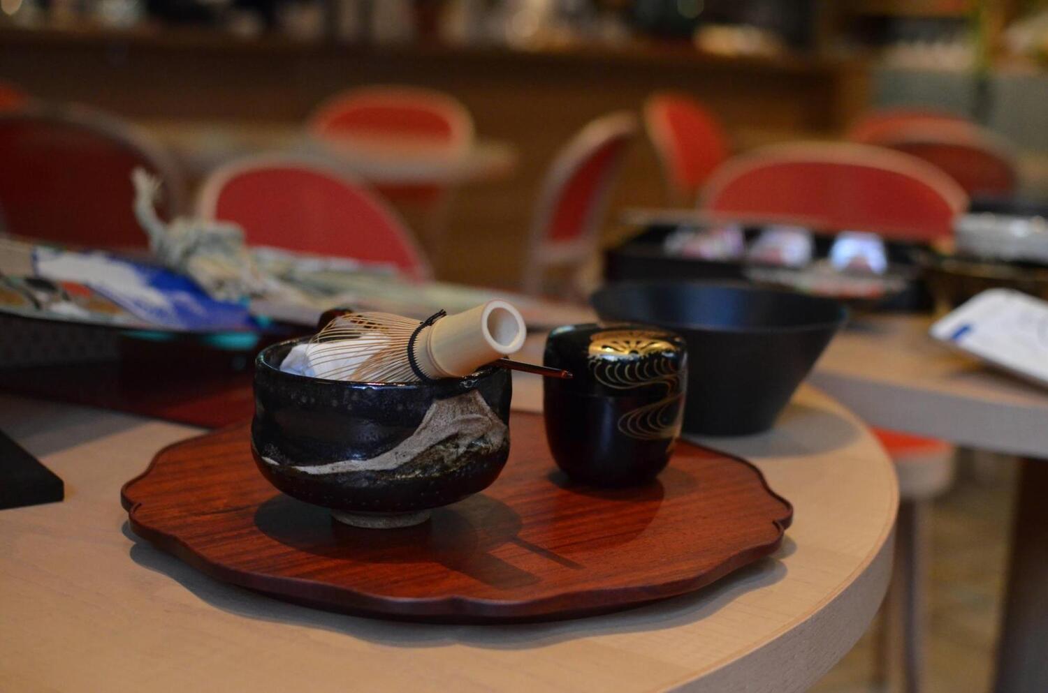 会場となった「CAFE DANCE」は、朝から多くの宿泊客で賑わう開放的な空間。コーヒーの香りと多言語が飛び交う国際色豊かな雰囲気の中、今回の茶道体験の設えが用意されると、その場の空気がふわりと整っていくのが感じられました。