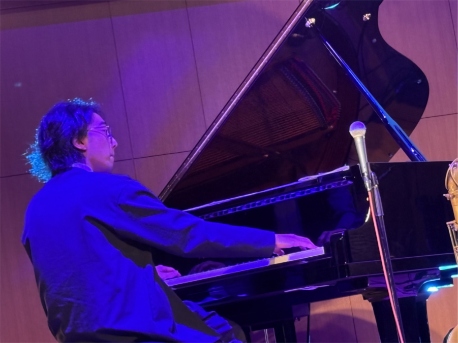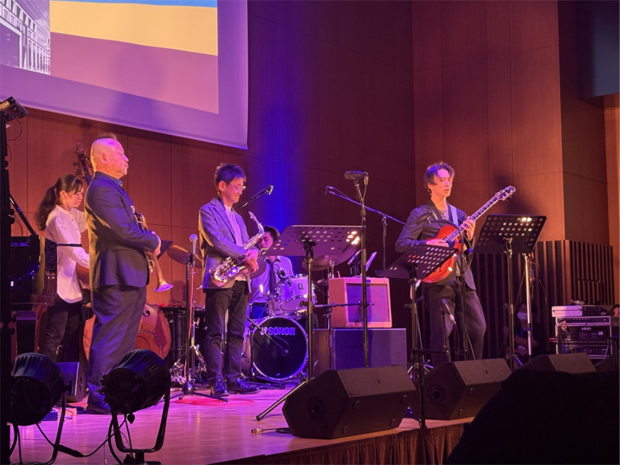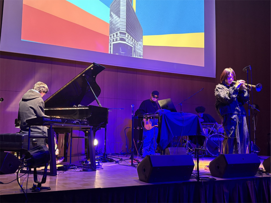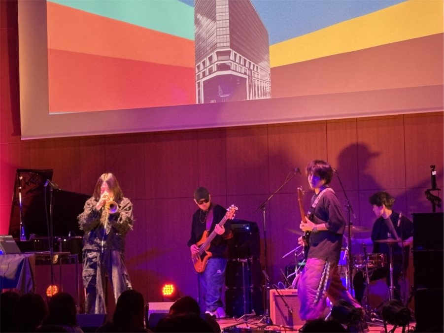 普段は高橋陸氏、中村海斗氏とトリオで活動していますが、このイベントでは4名のホーン奏者を引き連れ、オリジナル曲のアレンジを披露しました。