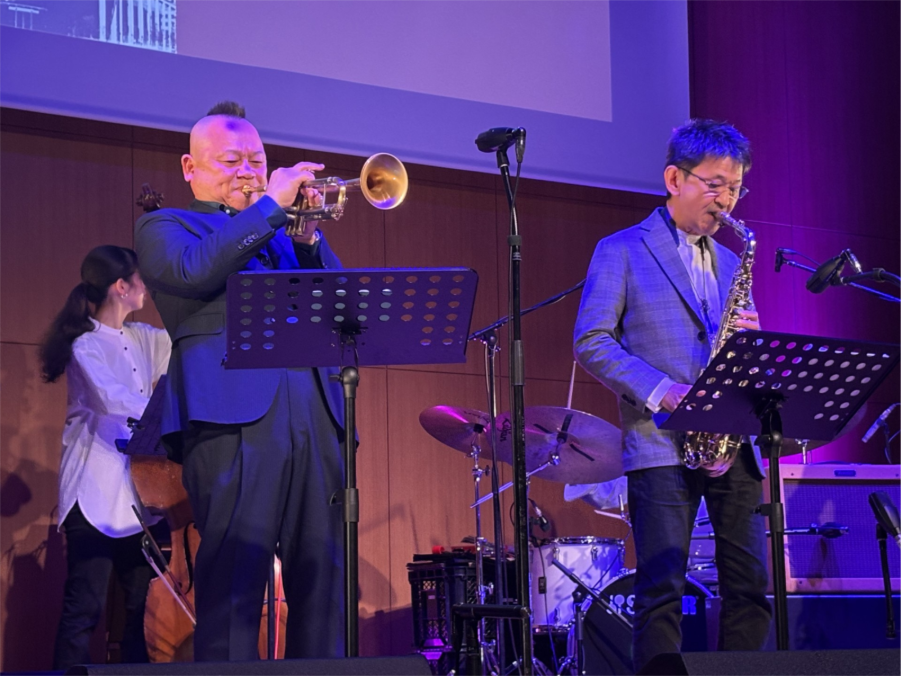 「最後は景気よく!」と、原氏と池田氏がそれぞれ強烈なソロを吹き会場を盛り上げていきます。圧巻のパフォーマンスには長年ジャズと向き合ってきた貫禄を感じさせ、音で魅せるベテランの姿に感動しました。