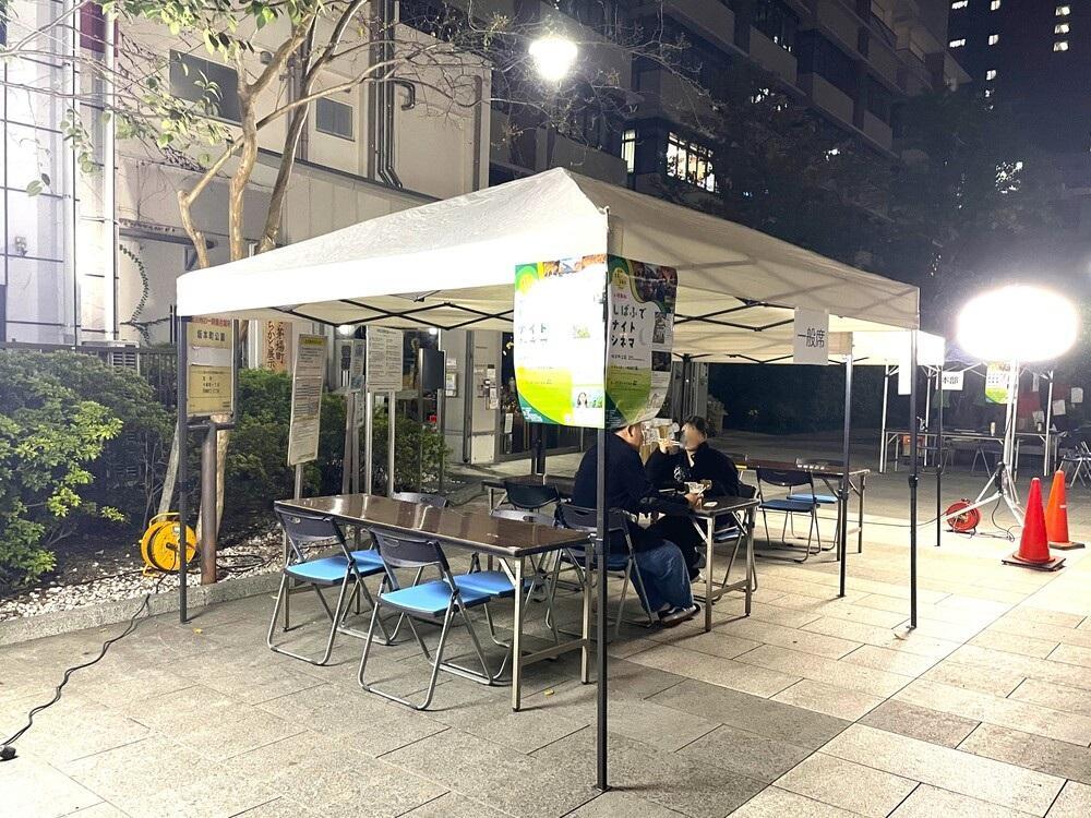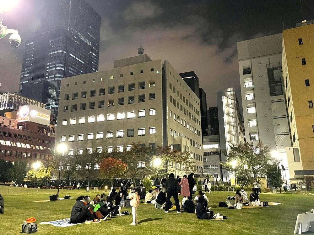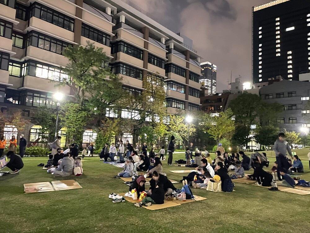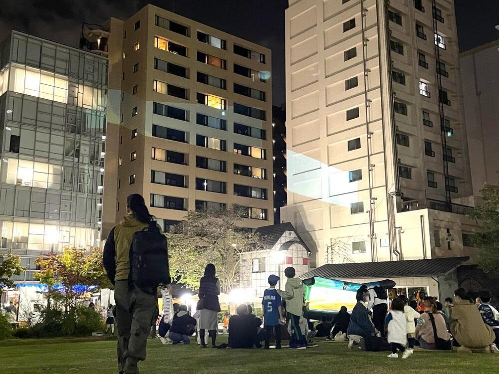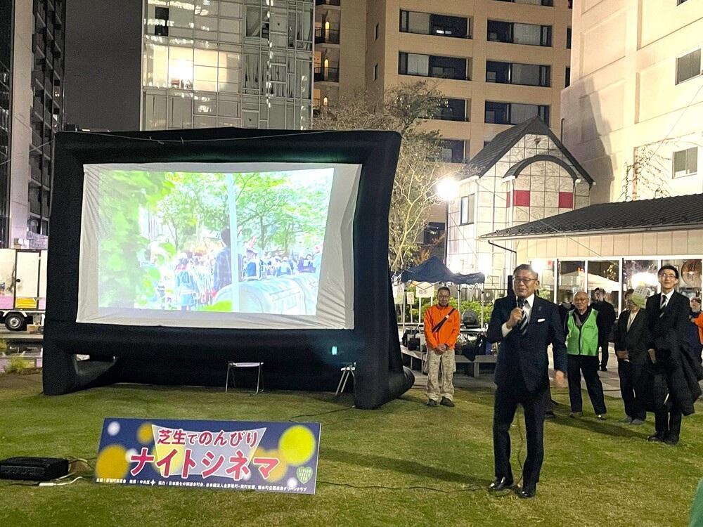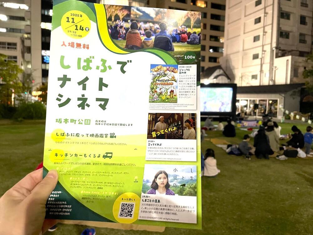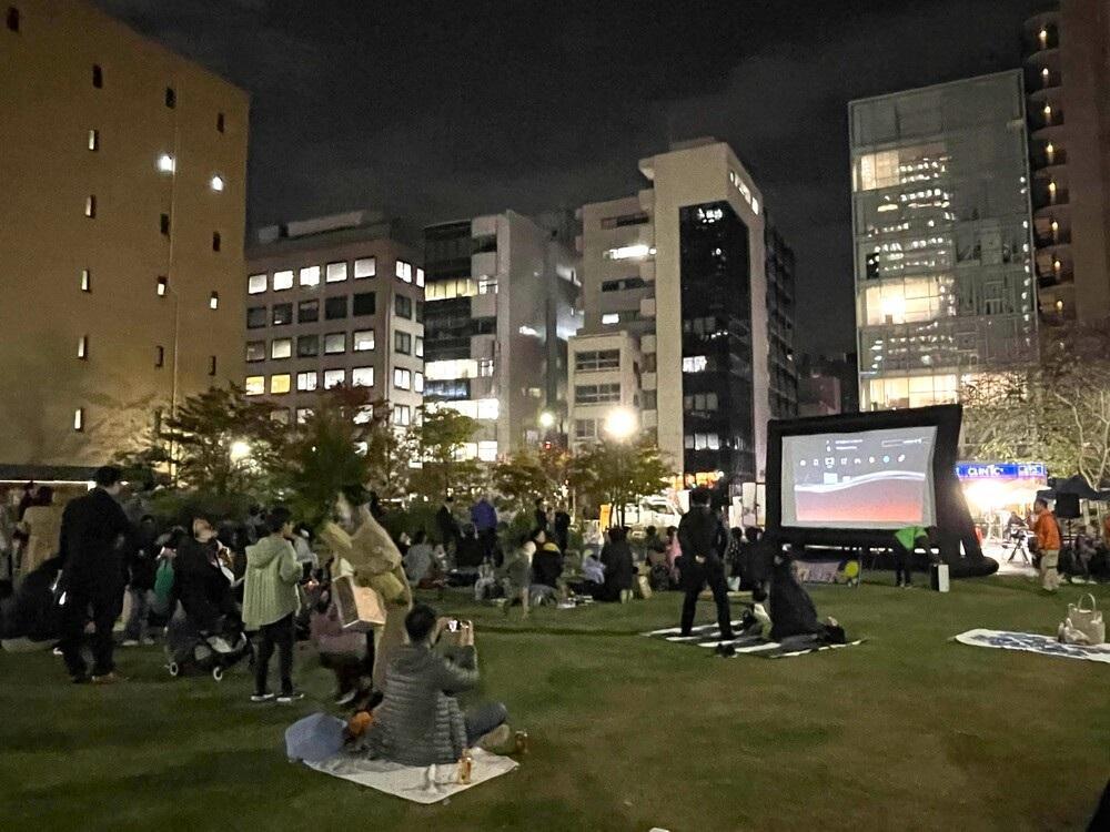 2025年11月14日に東京の兜町にある坂本町公園で開催された「しばふでナイトシネマ」。