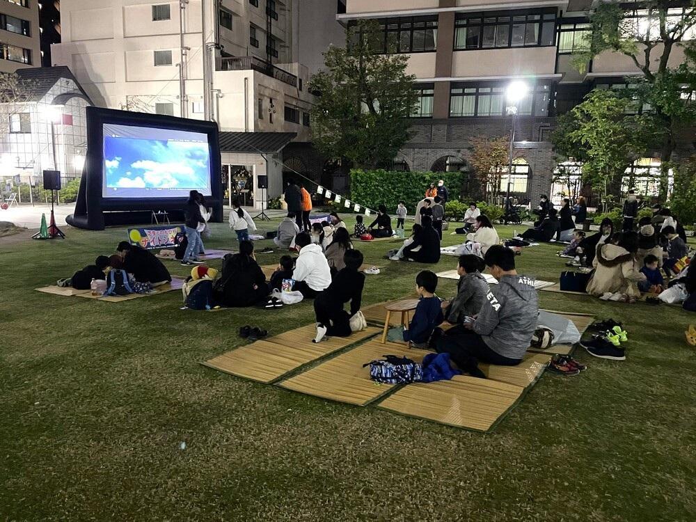 今回は、周辺にお住まいのファミリーやお仕事をされている方々がのんびりと芝生の上で映画を楽しんだ「しばふでナイトシネマ」の模様をレポートします!