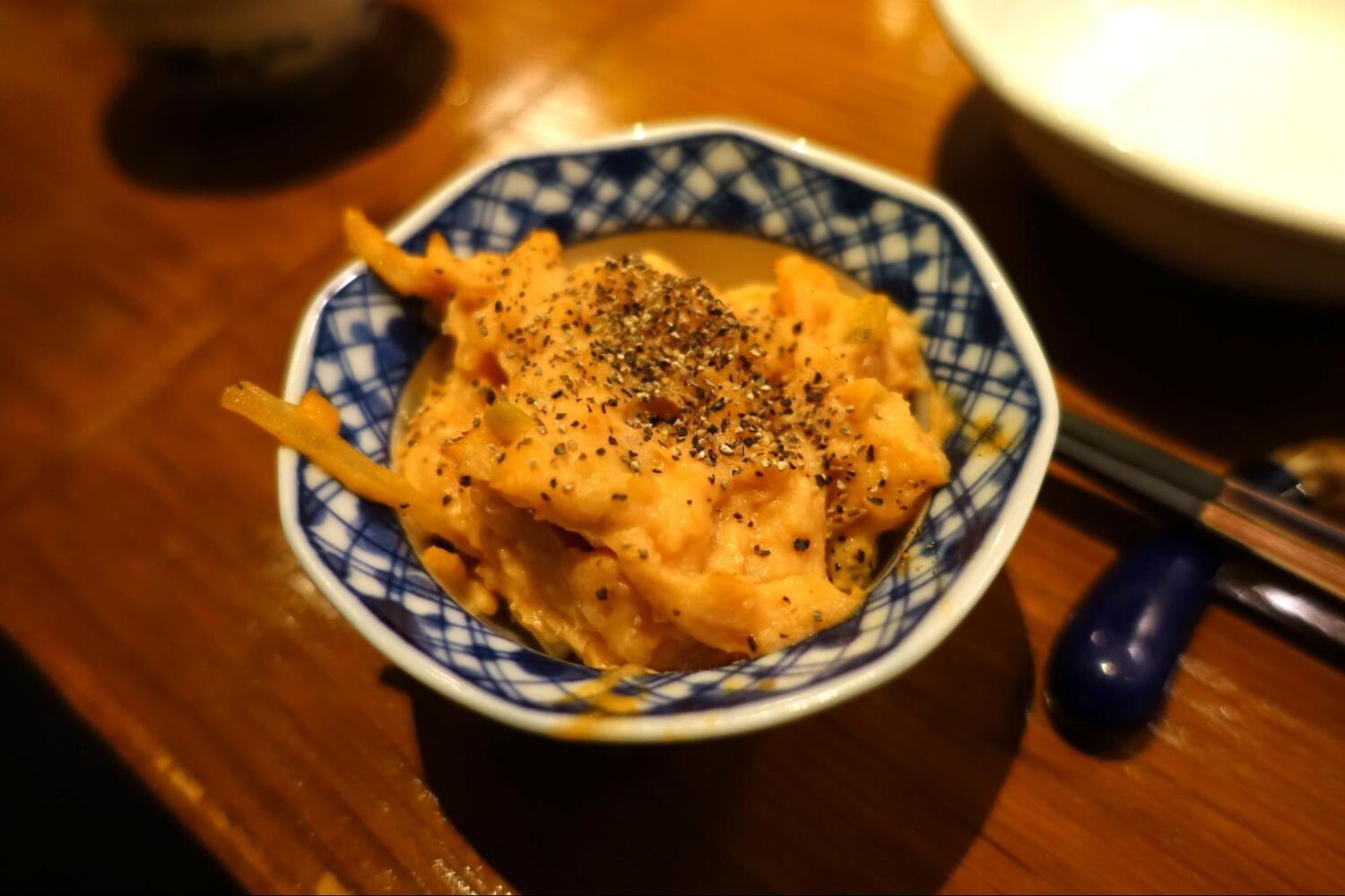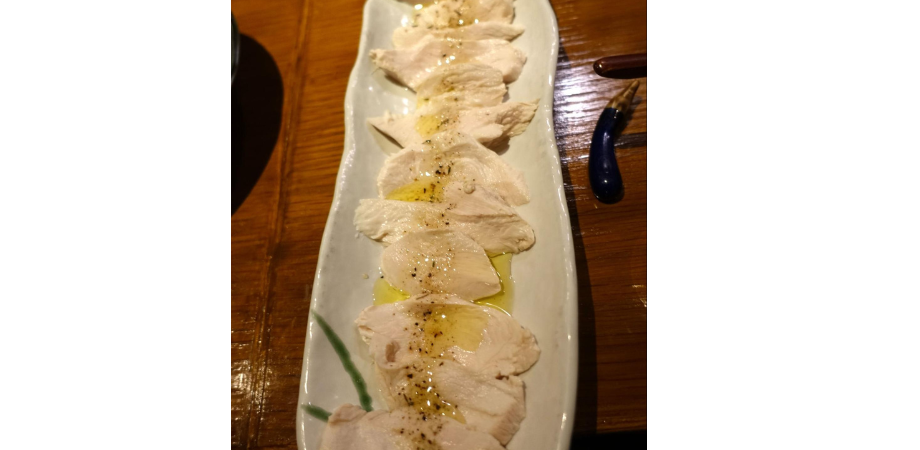 こちらは、手間がかかるためにつまみ菜ではなかなか出さないという美桜鶏の低温調理です。しっとりとした鶏肉に塩コショウのシンプルな味付けと、オリーブオイルの香りが印象的でした。お酒の旨みを邪魔しない、最高の一品だといえるでしょう。