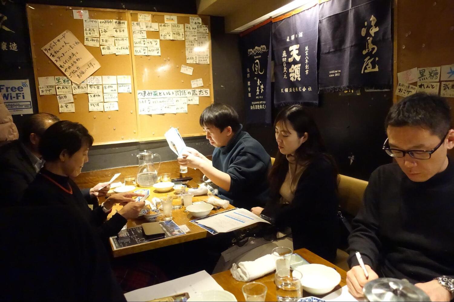 福田酒造のある長崎県平戸島の歴史から、気候、環境についてまで、福海に関する話はどんどん深堀りされていきます。おいしいお酒と料理を一度置き去りに、皆さん福田さんの話に聞き入っていました。