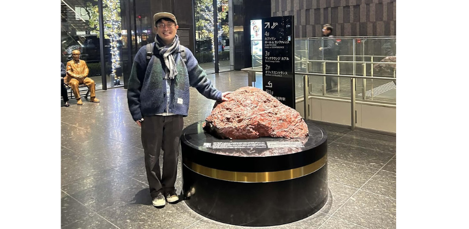 <イベント前には、渋沢栄一翁が生涯大切にした佐渡の縁起石「赤石」にタッチして運気アップ!>