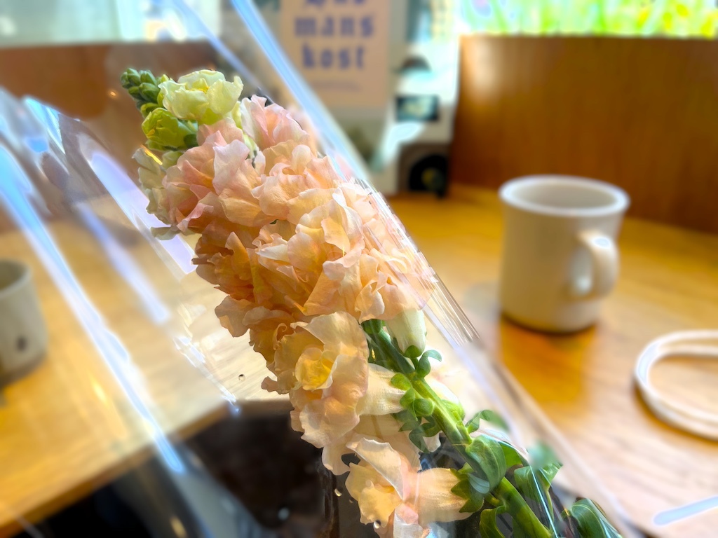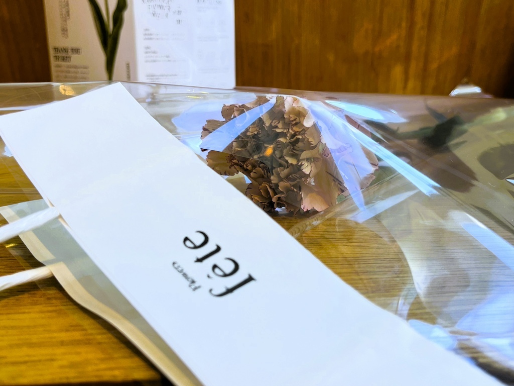 こちらの店舗で食事をしたり商品を購入したりすると、ランダムに選ばれた一輪のお花をプレゼントしてくれます。