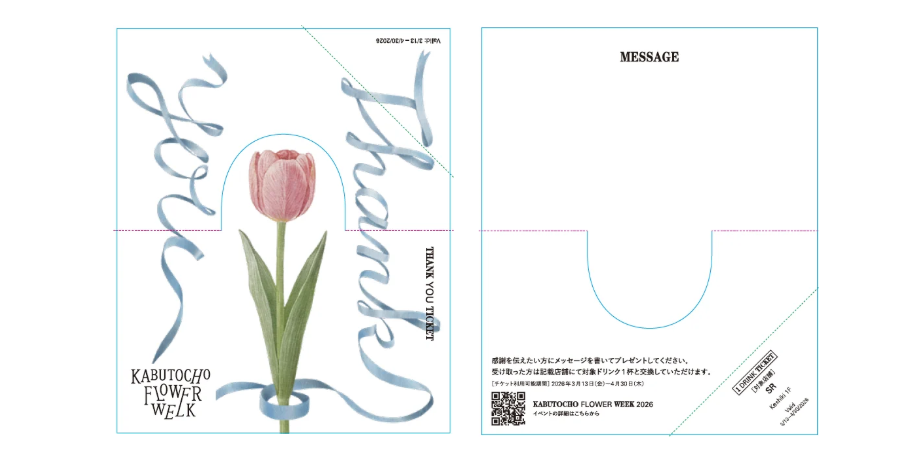 「KABUTOCHO FLOWER WEEK」の対象店舗では、1枚300円(税込)のTHANK YOU TICKETを購入することができます。