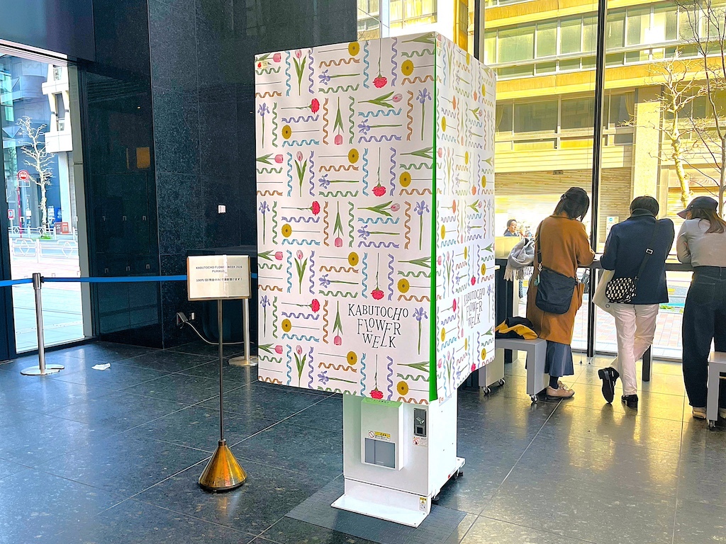 1Fのアトリウムには、「KABUTOCHO FLOWER WEEK」特別仕様のプリクラ機が設置されています。