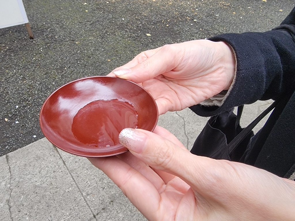 神事の後には、お清めのお酒が用意されており、ほんの少し口をつける程度でいただきます。