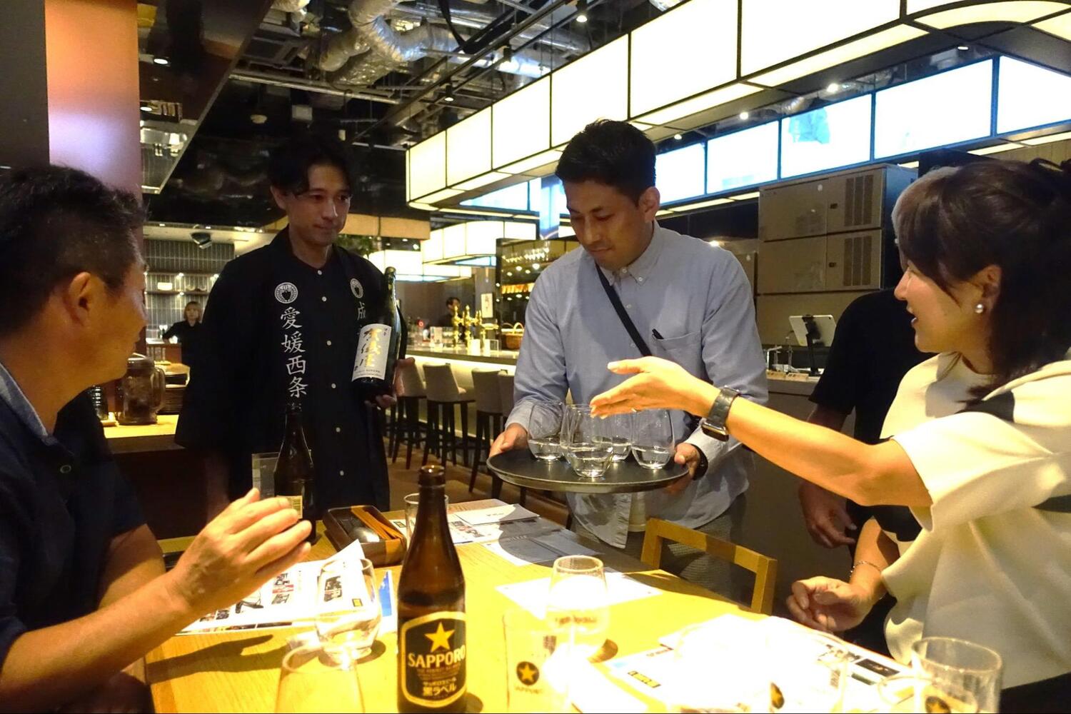 今回は飲食店での開催となりました。登壇者は、愛媛県西条市で「賀儀屋」を醸す成龍酒造常務取締役の首藤さん。過去サマーピクニックなどにもお越しいただき、3回目のご登壇となります。