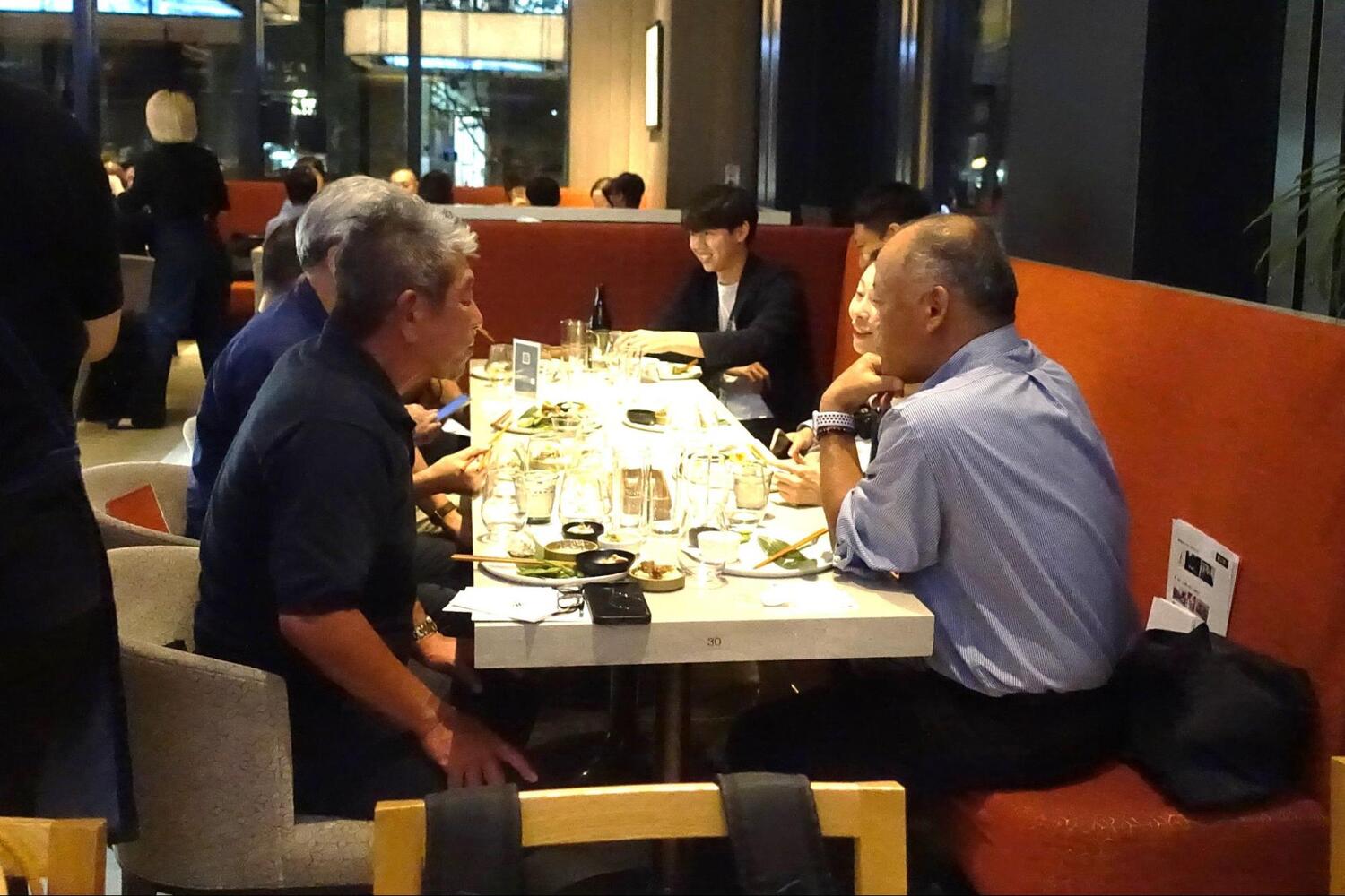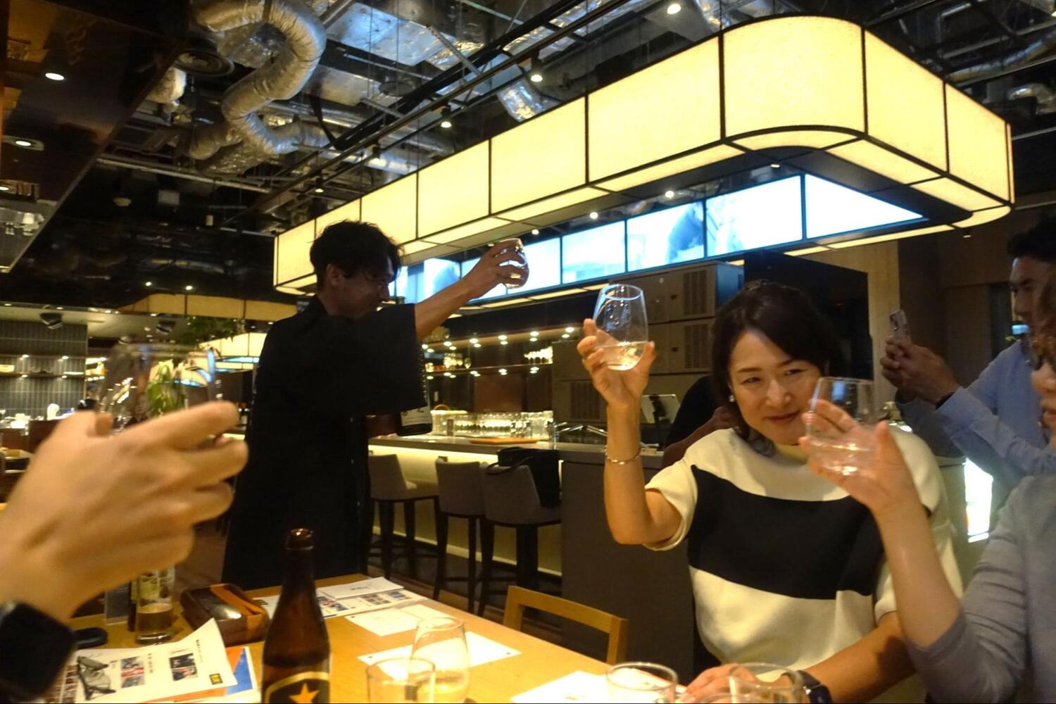 もう少し首藤さんとお話したい方は…ということで、こちらは二次会の様子。「茅場町食堂」へ移動し、改めての乾杯となりました。楽しい夜は、まだまだ更けていきます。