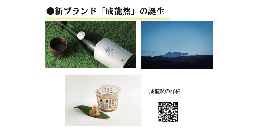 これまで愛媛県内のお米を使った日本酒造りをしていましたが、「成龍然」というのは地元西条市のお米を使用しています。他にもキュウリやタケノコ、ふき、白瓜など地元の野菜を使用した商品や、地元の大豆を使い昔ながらの製法を受け継いだお味噌など、地元に根ざした酒造り、商品開発を行っています。